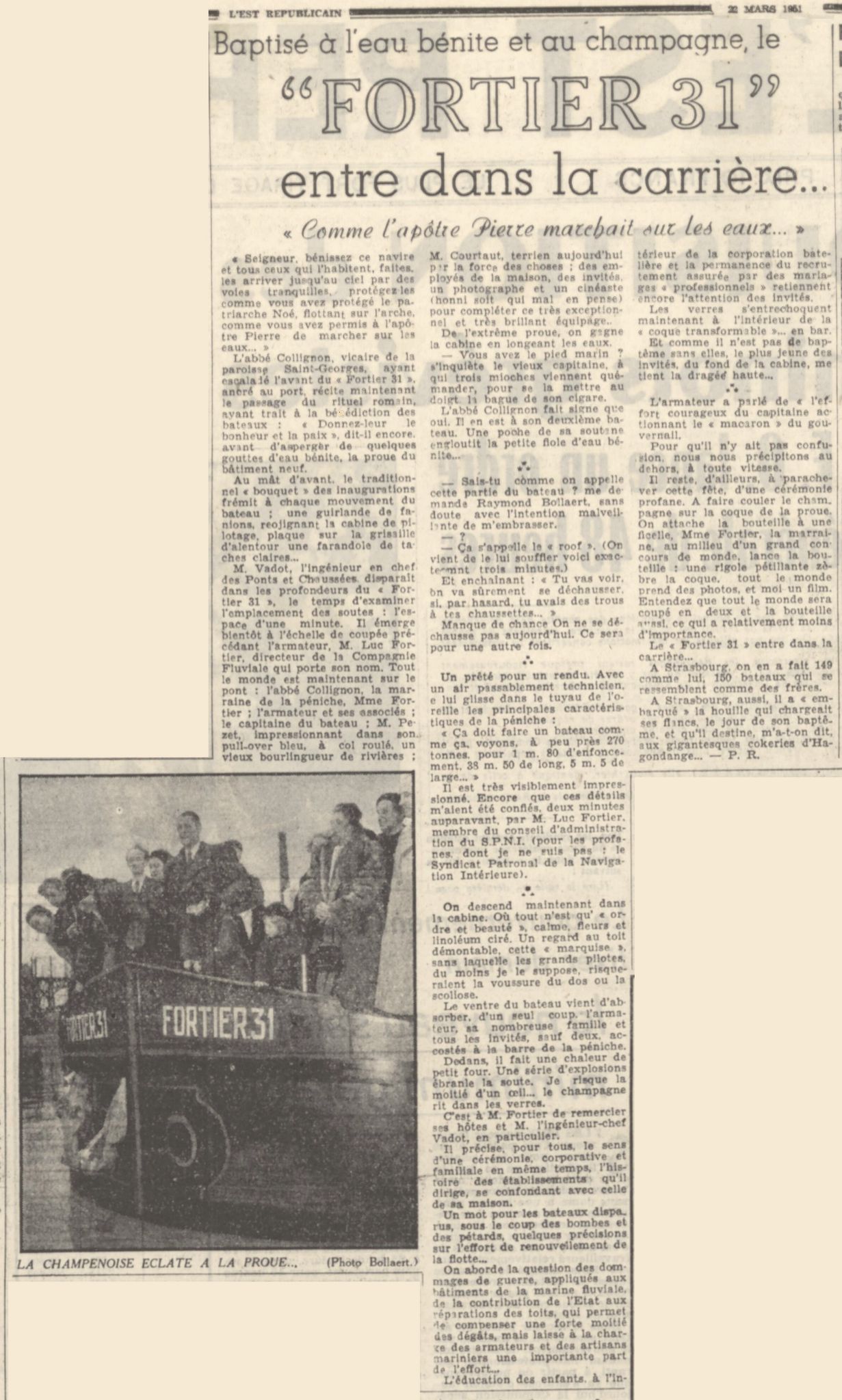 Voici un article paru dans L'Est Républicain du jeudi 22 mars 1951 - retrouvé grâce à Limedia Kiosque - où est relaté le baptême du FORTIER 31 à Nancy (54) :