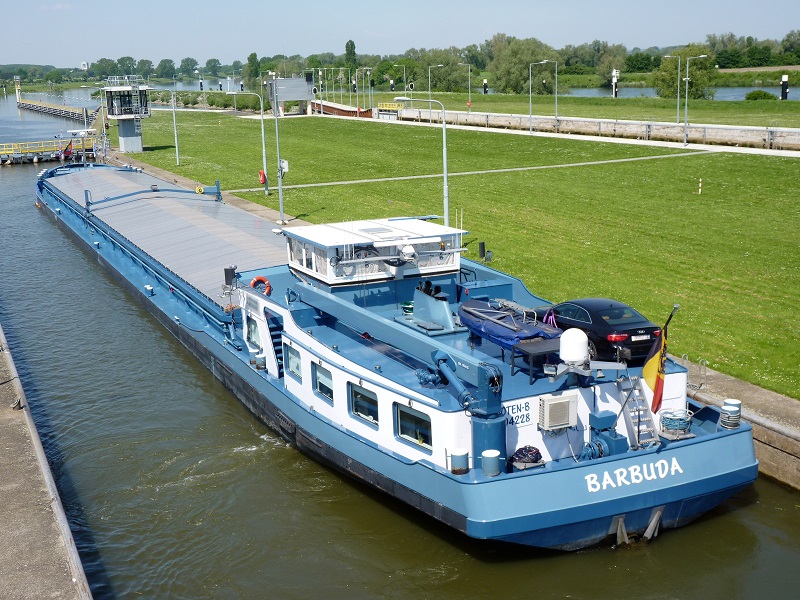 Barbuda , 84,65 x 9,49 x 3,18 , 1656 ton , Bouwjaar 1989 , Werf Harlingen in Harlingen ( Nederland ) , 953 pk Cummins en 330 pk Scania Veth-Jet boegschroef , ex Marina , ex Liberte , ex Houtland , ex Dios Mediante , eigenaar E. Notterdame in Schoten , ENI 06004228