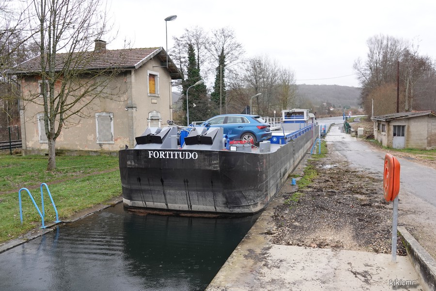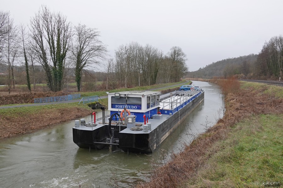 (sans plus de précision) de 145 tonnes de Chalon-sur-Saône (71) pour Anvers (B) ; le voici de passage le 10 janvier à Fontaines-sur-Marne (52), sur le canal entre Champagne et Bourgogne :