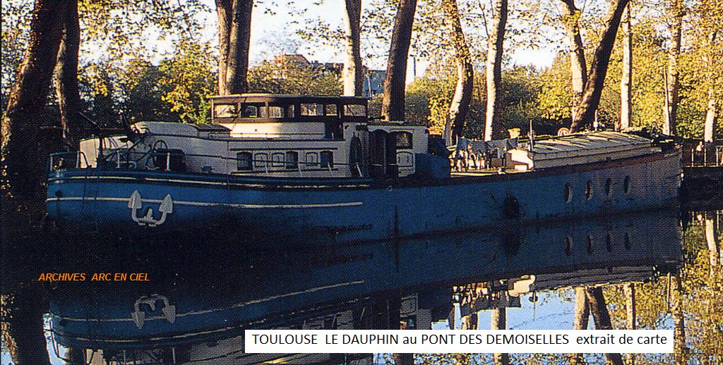 Sur cette photo sa devise est DAUPHIN, il est amarré devant la cale de radoub des Ponts de Demoiselles à Toulouse.