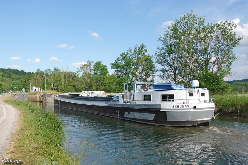 SEQUENS était à Vienne au printemps dernier, et là il fait encore mieux ! Il a chargé un transformateur électrique de 130 tonnes à Vernou-la-Celle (77), sur la Haute-Seine, aux Eaux Chaudes, pour Bratislava, en Slovaquie, sur le Danube. La raison aurait voulu qu'il fasse le détour par le nord pour remonter le Rhin jusqu'à Mayence, mais par bonheur, pour démontrer que le petit gabarit peut encore avoir une utilité, notamment pour ce genre de transports, il a dû passer par la Marne, le latéral et le canal de la Marne au Rhin. Ça m'a donné l'occasion de faire quelques photos :