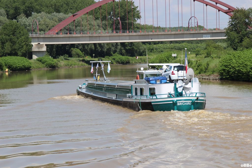 - et le 29 avril 2023 à l'aval de l'écluse de Riaucourt, devant le colombier, et dans le pont-canal de Bologne (52), chargé de 198 tonnes de clinker d'Arles pour Dunkerque :