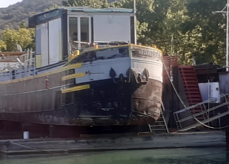 Vu ce jour ce bateau en rive droite du Rhône à Ste Colombe (Rhône).