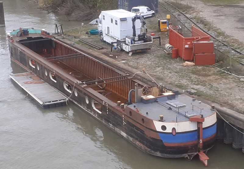 NOBIS, c'est un peu un bateau historique, maintenant : en effet, c'est lui qui a été le dernier à charger à la Solvay à Dombasle. Après des milliers et des milliers d'autres, il n'y en a plus eu après ce 3 avril 2019 :