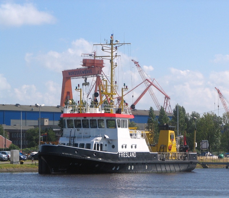 Friesland , 31,81 x 7,50 x 3,50 , Bouwjaar 1991 , Werf Deutsche Industrie Werke in Berlin ( Duitsland ) , 700 pk Deutz-MWM , eigenaar Wasserstraßen- und Schifffahrtsamt in Emden , IMO : 9031387