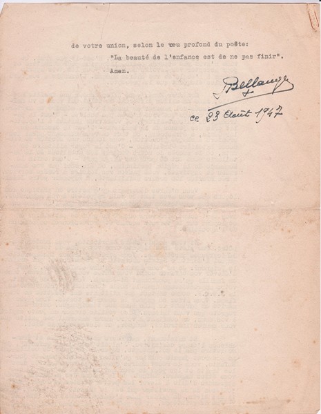 Lecture faite par l'abbé Joseph Bellanger lors de la cérémonie sur le Je Sers.