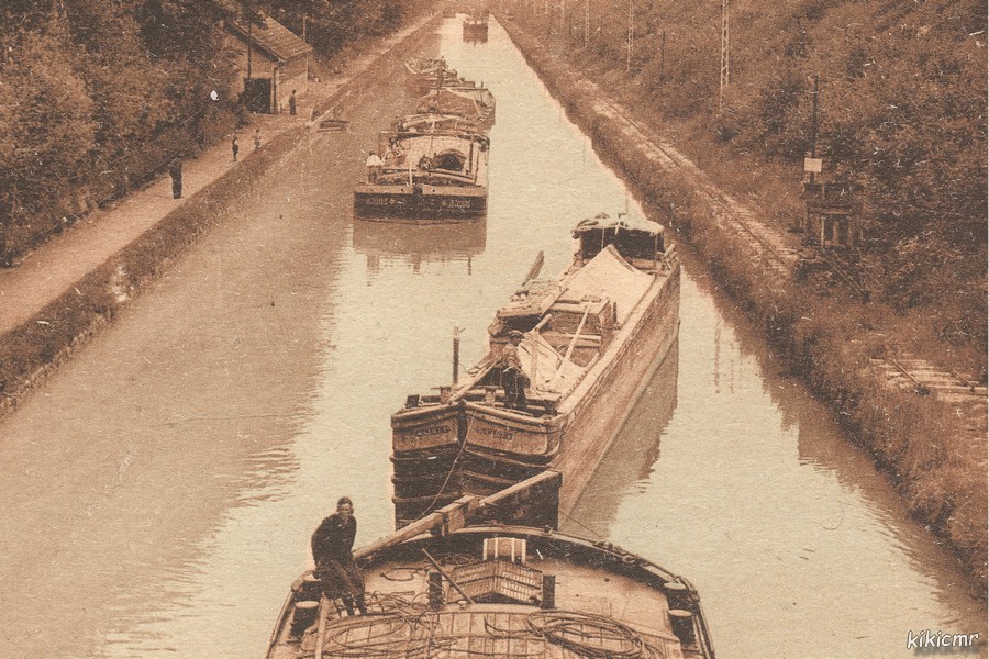Mont-de-Billy - Route Châlons-Reims - Bateaux entrant sous le funiculaire - Direction la Marne