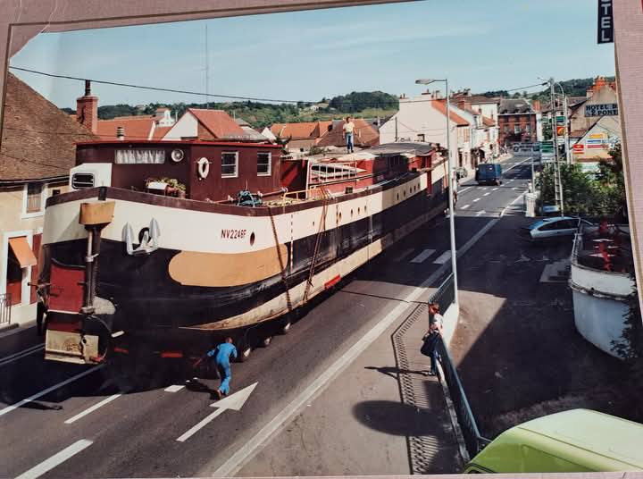 Petite découverte via Facebook, une personne à partagé deux photos interessante du convoyage du Saint Thibault, en partance pour le plan d'eau de Vichy (03) en 1990.