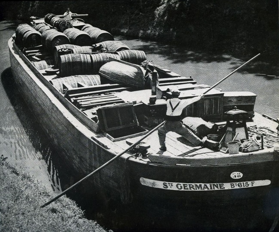 Vue aérienne en 1950 (2) LA FICHE TECHNIQUEDurant toute son exploitation marchande, elle ne transporta qu’un seul type de fret : du VIN d’où le nom donné à ce type de bateau : « un pinardier ».