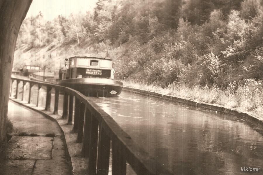 Encore une photo de l'arrière, non datée, à la sortie d'une voûte que je n'ai pas reconnue (il y a une ligne aérienne pour l'alimentation électrique d'un toueur) :