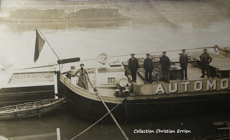 Voici une jolie carte photo montrant un chaland pétrolier construit d'après mes notes en 1917 à Choisy le Roi 43xx7m62.