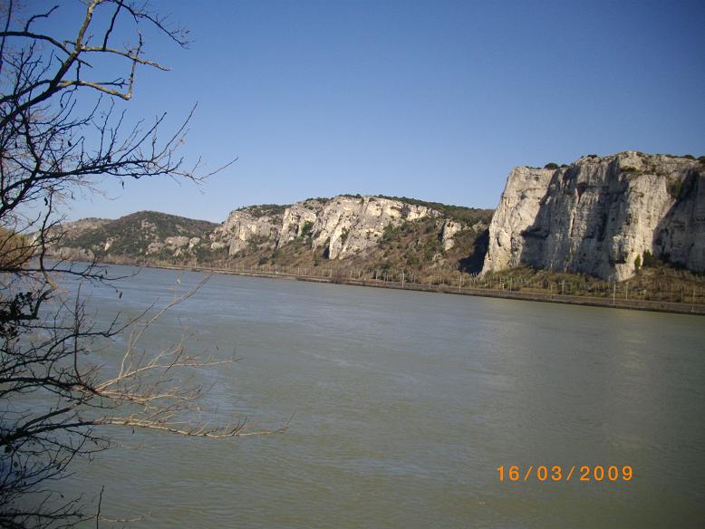 photo du defile de Donzere (depuis le pont entre le km 169 et 170),c'est plus calme!