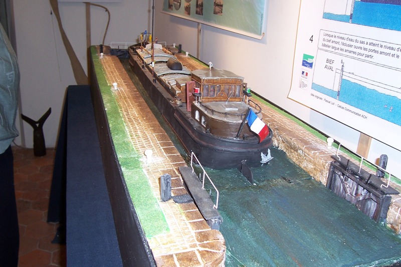 hier visite a nogent d'une exposition tres interressante; reproduction de l'ecluse de nogent avec automoteur