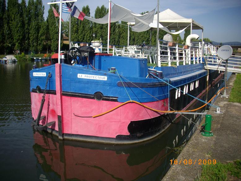 Je viens de passer une heure avec son propriétaire qui remonte vers Strasbourg, et lui-même n'a pas pu me dire grand chose sur l'origine du bateau!