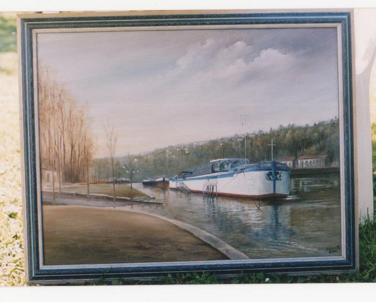 Tableau d'Odile, offert (encadré) au bateau chapelle.