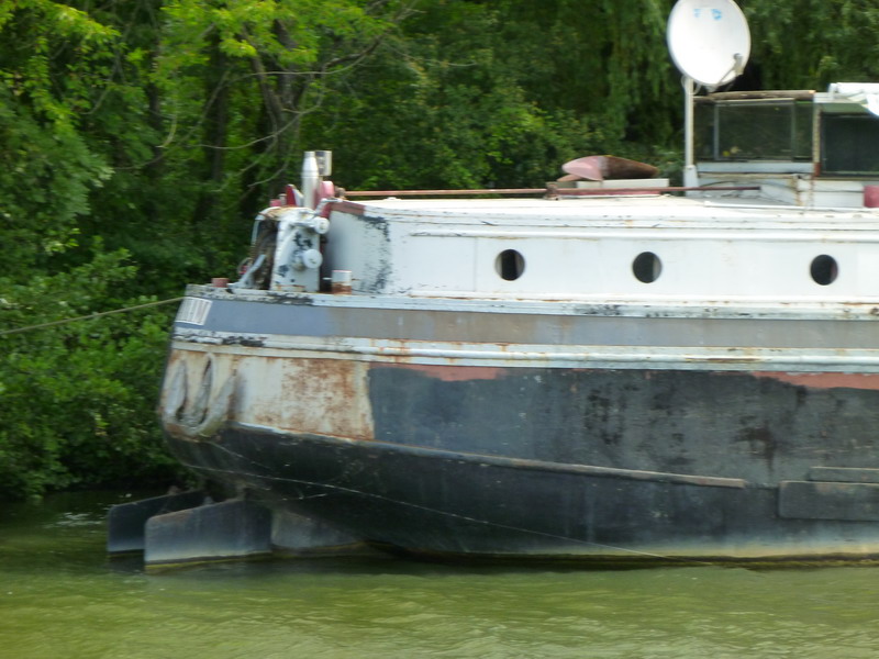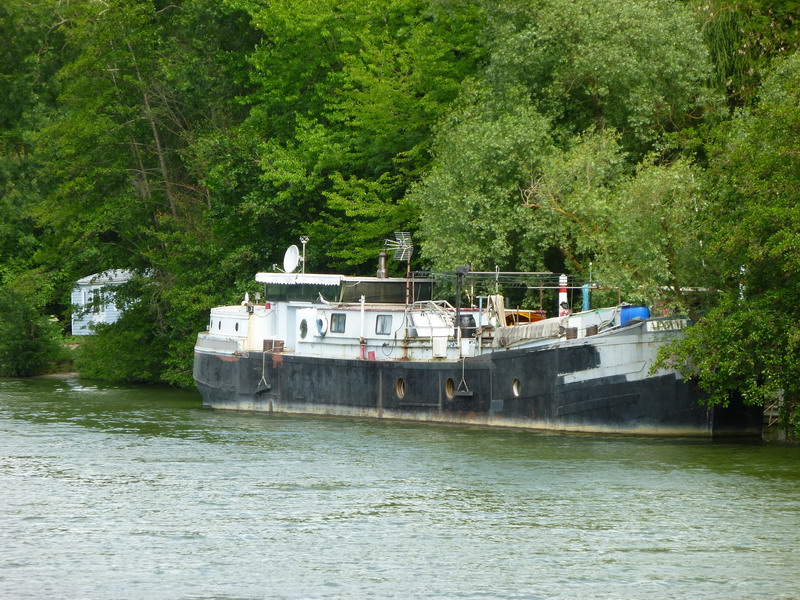 Amarré en amont de l'ancien barrage de Champlay (Yonne)...