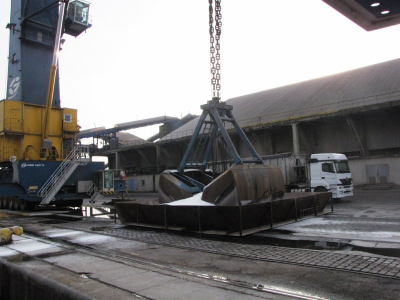 sinon chargement engrais depuis l'hangar .la marchandise est approché par un gros chargeur elle est deposé dans un grand bac puis repris par la grue un excelent grutier vise la moitiée du bateau :shock: avant d'ouvrir et liberee la marchandise 15 T par vague dans la cale :mrgreen: