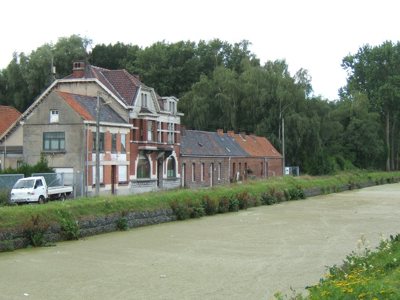 Les bâtiments et la maison du patron , le long du canal désaffecté de Pommeroeul-Antoing