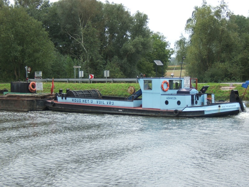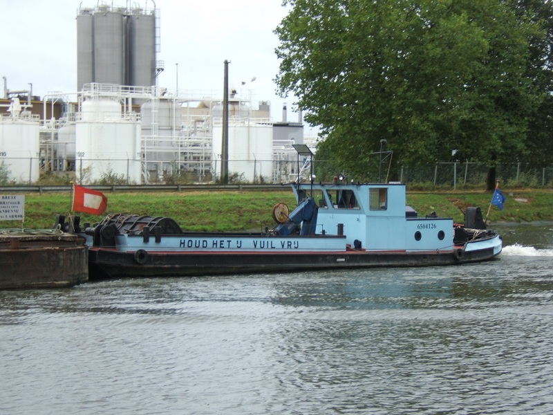 On peut lire "Hou het IJ vuil vrij" (garde le IJ libre de toute saleté). Donc il devrait venir des Pays Bas vu que le IJ est une rivière et un bras de mer à Amsterdam