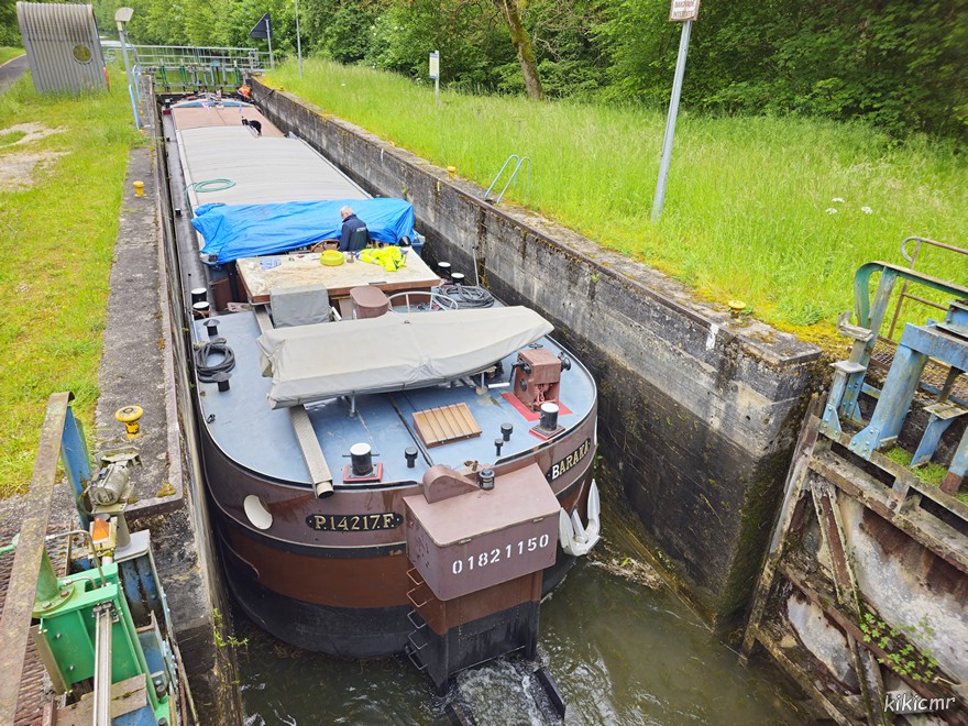 BARAKA est en route pour son nouveau port d'attache, Talange (57) ; le voici de passage hier à l'écluse n°29 dite de Bohanne, commune de Guerpont (55), dans la vallée de 70 (canal de la Marne au Rhin branche ouest, versant Marne) :