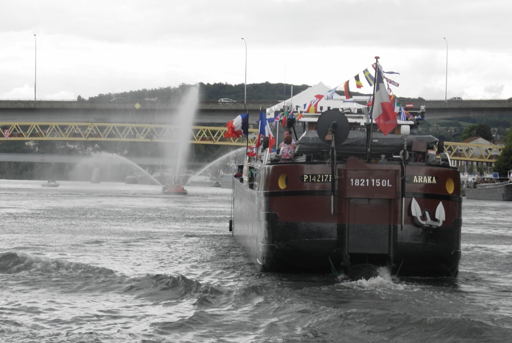 Il est près de 14h00 ce samedi 19 Juin, en aval de Bougival... je me promène complètement par hasard sur la Seine à bord d'un bateau, et au loin j'aperçois...