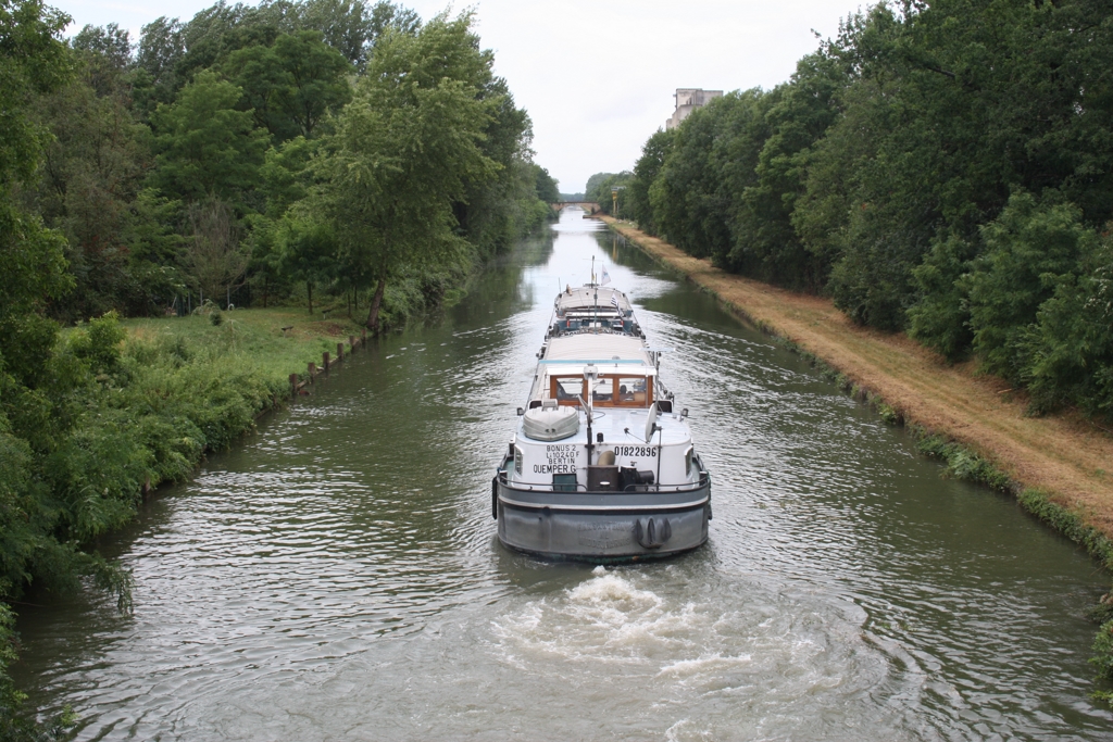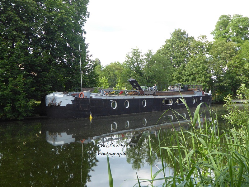 Sa nouvelle vie de bateau-logement : il est en cours d'aménagement au chantier Miclo, à Dombasle ; il y a quelques semaines, il a été ballasté avec des traverses en béton, et dans la bordaille, sur le côté qu'on ne voit pas sur les photos, il y a des trous...