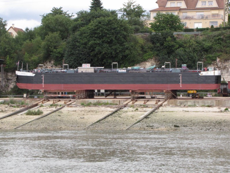 la barge jumièges ayant été construite au trait(dans un hangar,un peut plus bas que le chantier),