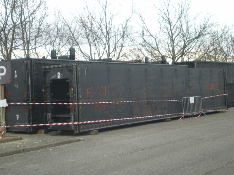 Suivant les années et les crues, il arrive parfois de voir un dépot de vase vers la porte amont, donc là c'est nettoyage: grue, petit Bob, pelle et balai.