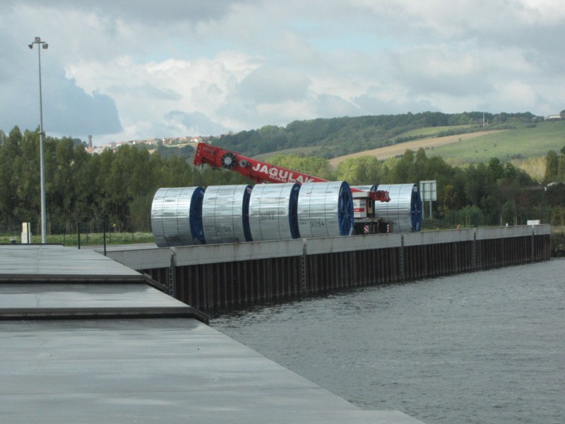 voici quelques photos du chargement de 9 tourets de filbre optique qui ont un poids brut de 30 tonnes et net environ 26,500 tonnes et une longueur de cable environ 500 metres ,le diametre d'une bobine est de 4,60 m