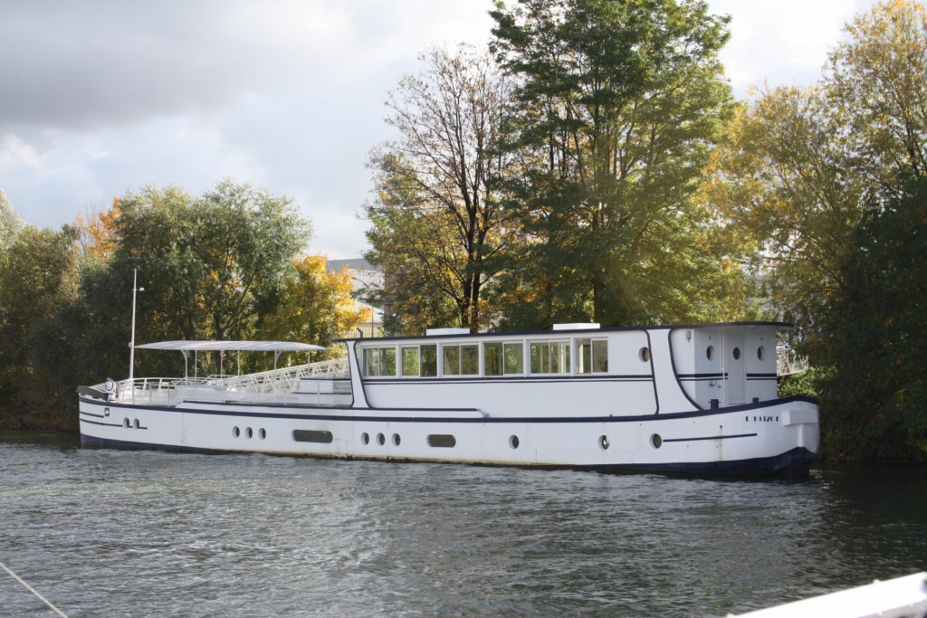 Le J.A.G est stationné à Colombes en aval du pont d'Argenteuil ,transformé en salle de réception