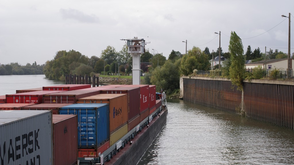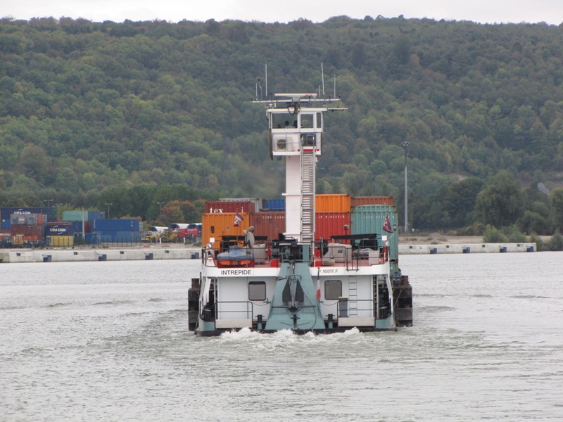 INTREPIDE P 16 817 F avalant dans le port de rouen en direction du havre remplie de containers
