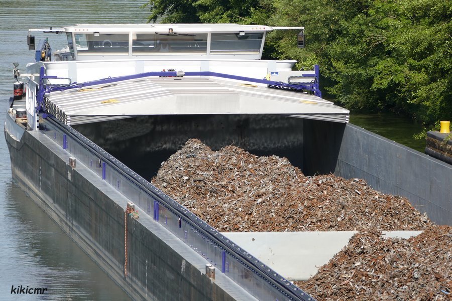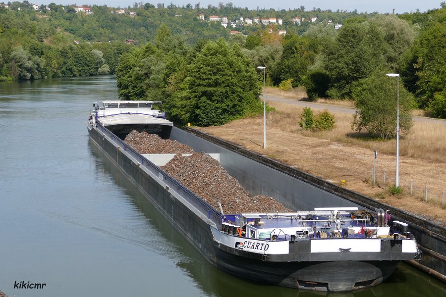 Montant à l'écluse d'Aingeray (54), sur la Moselle canalisée, avec de la ferraille pour Neuves-Maisons, le 30 juillet 2018 :