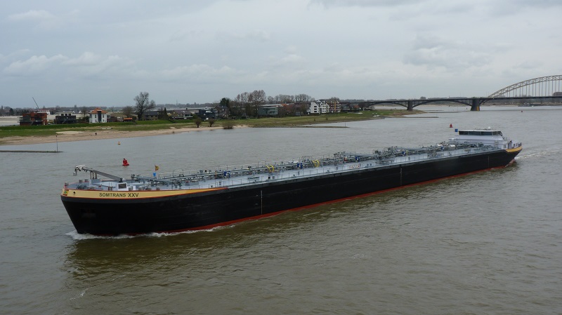 Somtrans XXV , 135,00 x 17,50 x 4,32 , 7162 ton , Bouwjaar 2011 , Werf STIG. Jiangsu Sugang Shipbuilding in Yizheng ( China ) en Smits in Capelle a/d IJssel ( Nederland ) , 2 x 1800 pk ABC en 2 x 535 pk Caterpillar – Verhaar Omega-Jet boegschroef , eigenaar Somtrans NV in Rotterdam , ENI 02333652