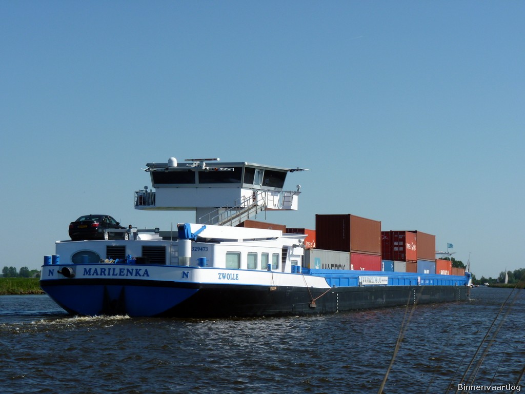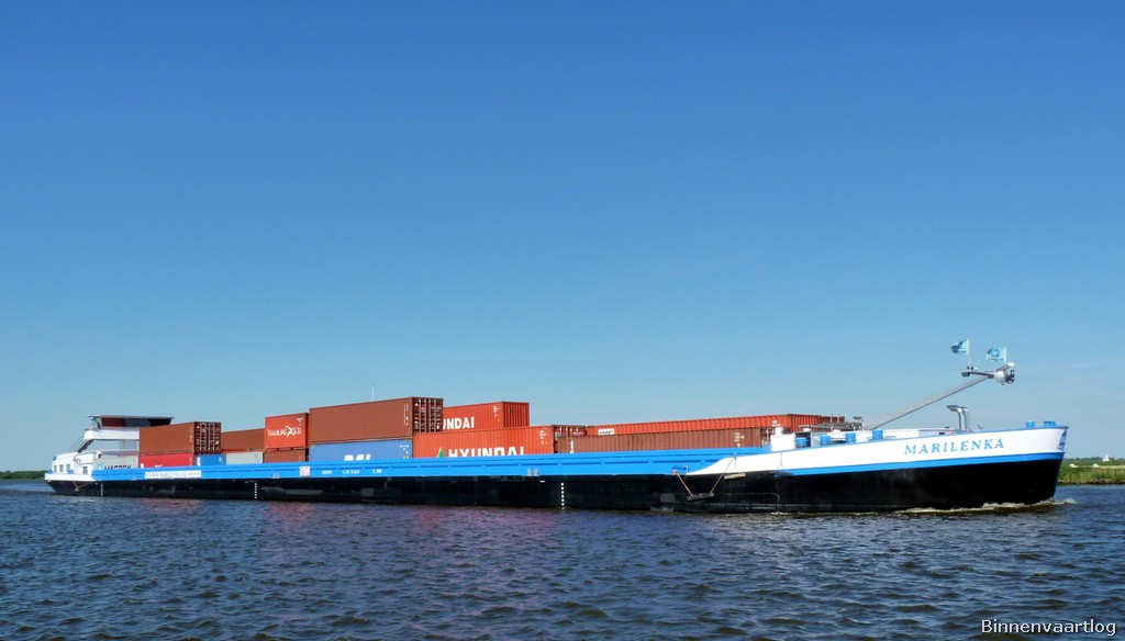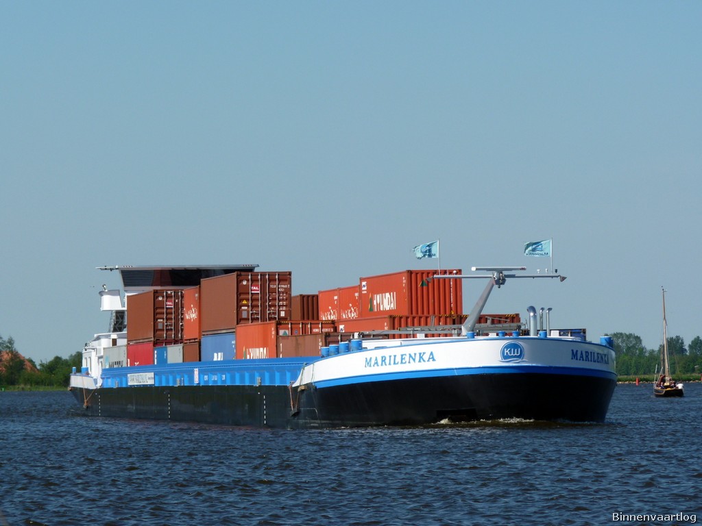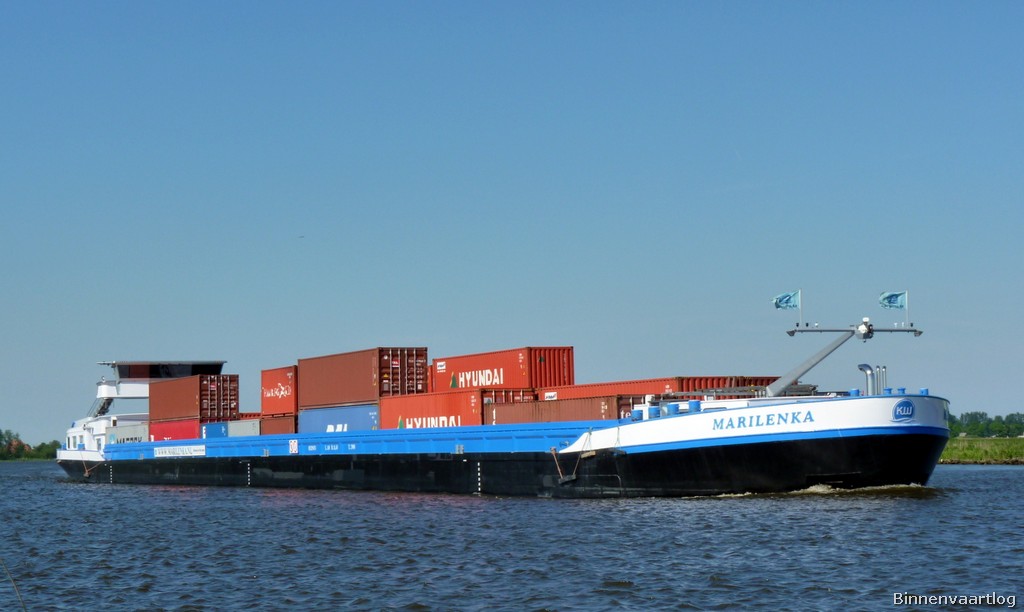 Marilenka , 110,00 x 11,45 x 3,36 , 2900 ton , Bouwjaar 2007 , Werf Stig Jiangsu Sugang Shipbuilding in Yizheng ( China ) en Hasselt BV in Hasselt ( Nederland ) , 1836 pk Caterpillar en 608 pk Caterpillar Verhaar Omega-Jet , boegschroef , eigenaar S. Kiers Vof in Zwolle , ENI 02329473
