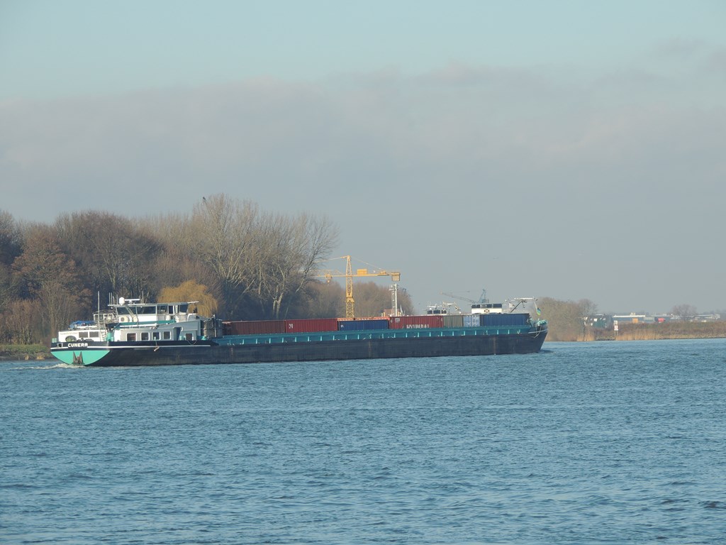 Cunera , 110,00 x 11,45 x 3,64 , 3247 ton , Bouwjaar 2008 , Werf Stig Jiangsu Sugang Shipbuilding in Yizheng ( China ) en Bayens BV in Raamsdonksveer ( Nederland ) , 1700 pk Mitsubishi en 571 pk Scania Veth-Jet boegschroef , eigenaar Cunera CV in Tolkamer , ENI 02330447