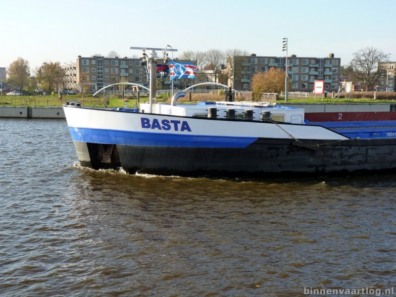 Basta , 109,97 x 11,45 x 3,63 , 3246 ton , Bouwjaar 2006 , Werf Yizheng Shipping Fixing in Yizheng ( China ) en Instalho in Werkendam ( Nederkand ) , 1521 pk Caterpillar en 530 pk DAF – van Wijk boegschroef , ex Sayonara , eigenaar Vof. Penta (J. Zantvoord) in Delfzijl , ENI 02327459