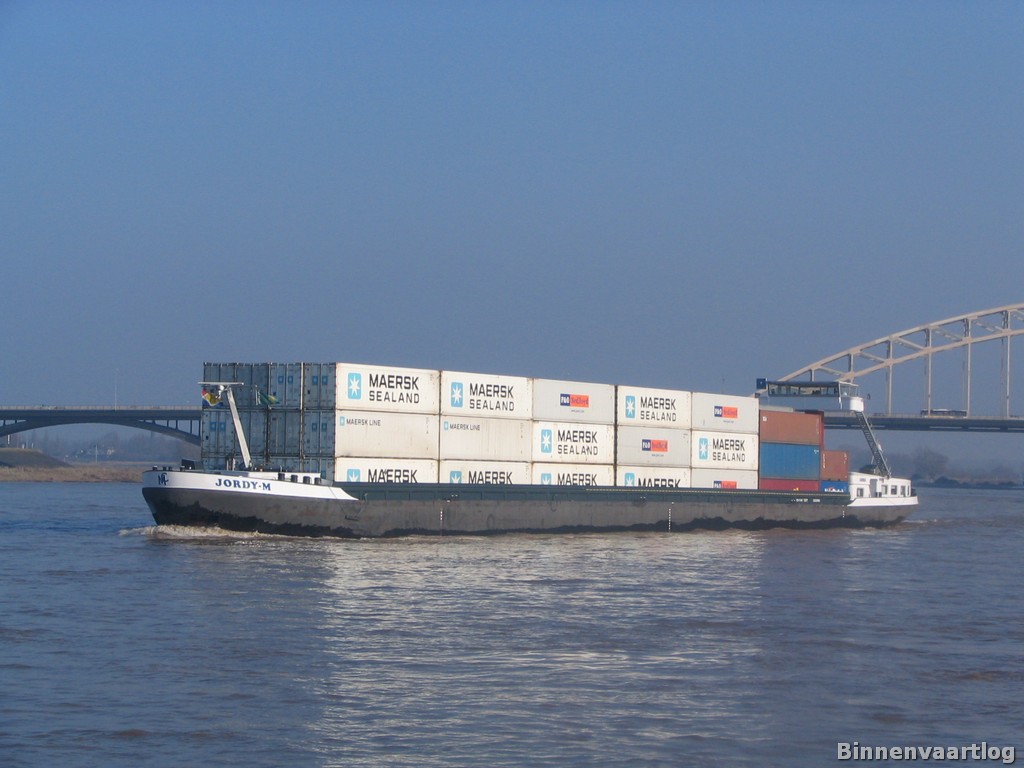 Jordy-M , 110,00 x 11,45 x 3,64 , 3277 ton , Bouwjaar 2007 , Werf Csainty Shipbuilding in Yizheng ( China ) en Afbouwwerf TeamCo Shipyard BV in Heusden ( Nederland ) , 1775 pk Caterpillar en 608 pk Caterpillar Verhaar Omega-Jet boegschroef , eigenaar Mutsaers Vof in Boxtel , ENI 02329366