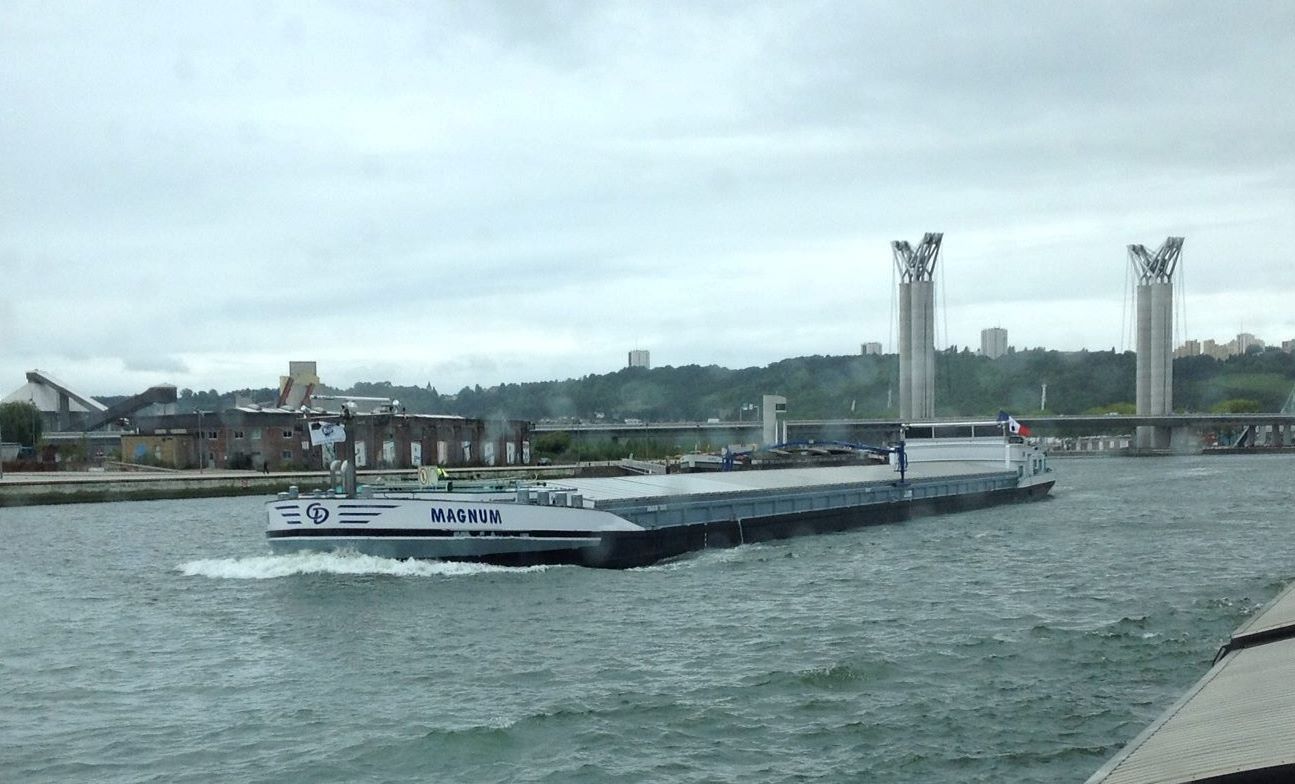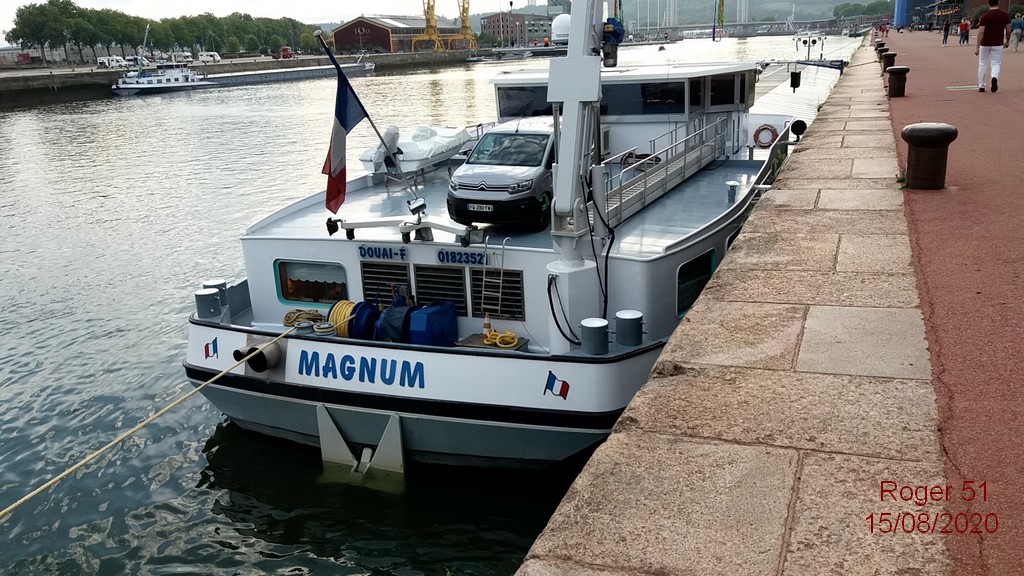Voici le MAGNUM de passage mercredi à Thomery , pas de ronfles , les chevaux ne sont pas sortis, il va croiser le NECTON plein bac lui aussi qui marche tout aussi doucement dans ce bief au combien dangereux pour les bateaux lourdement chargés. On apprécie les dimensions du bateau en regardant le garage à voitures sur le logement , il me semble qu'il reste une place , bref ce n'est plus le MAGNUM au gabarit freycinet....