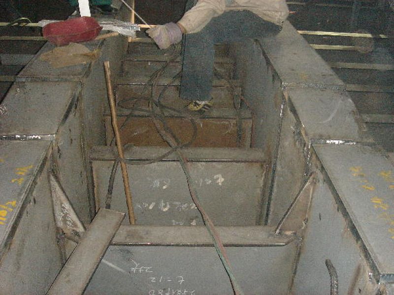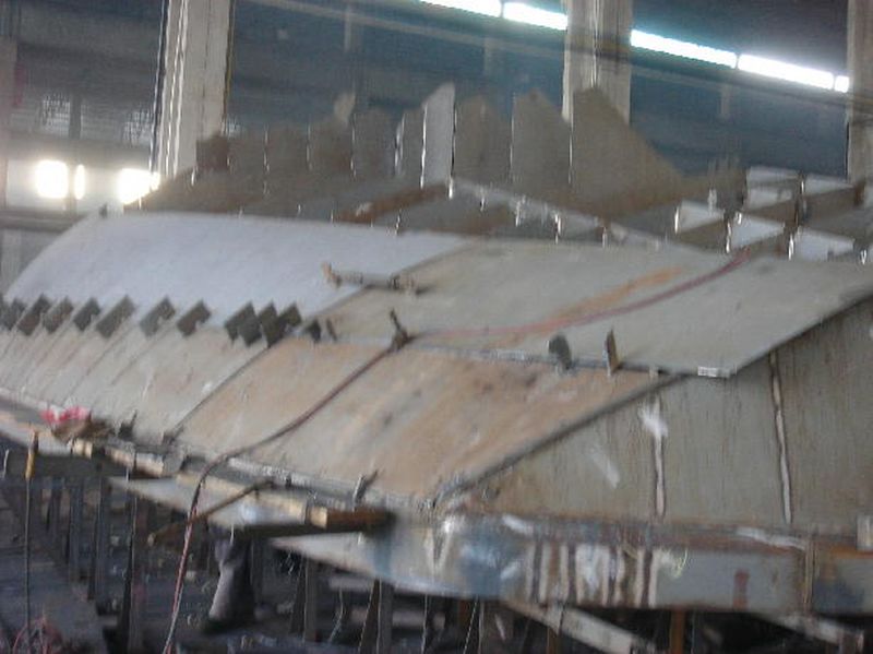 Sur le dernier post de Baron, la 1ère photo est vraisemblablement la structure du coffrage avec l'hiloire. On voit le raidisseur de l'hiloire qui est la pièce pliée en forme de trapèze rectangle, et le plat-bord à angle droit en vertical...