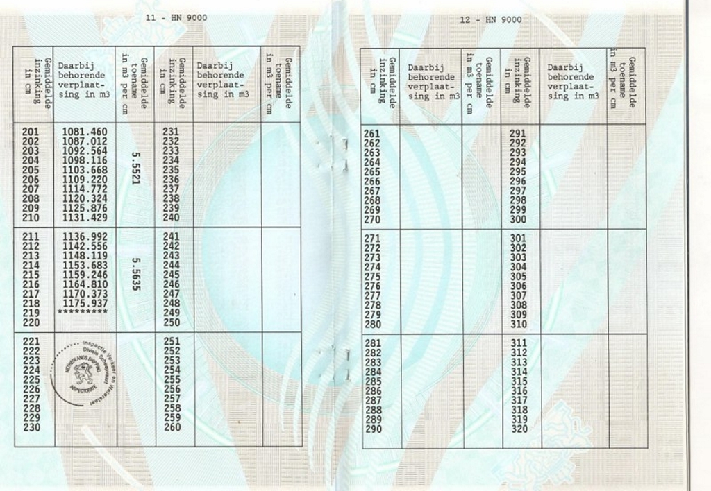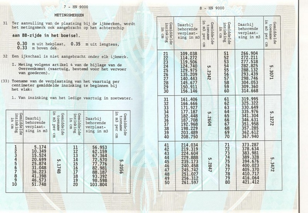 Si l'on considère ce boat jaugé à vide à : 0,60m de moyenne; lorsqu'il charge à 2.90 m d'enfoncement, il s'enfonce donc de 2,30 m ou 230cm.
