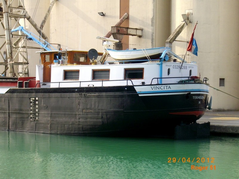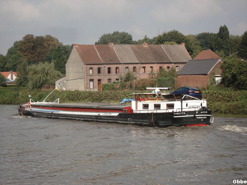 Vincita , 39,0 x 5,09 x 2,53 , 370 ton , Bouwjaar 1965 , Werf De Winter in Boom ( Belgie ) , 250 pk Caterpillar , ex Vincita , eigenaar E. de Nijs in Terneuzen , ENI 03290288