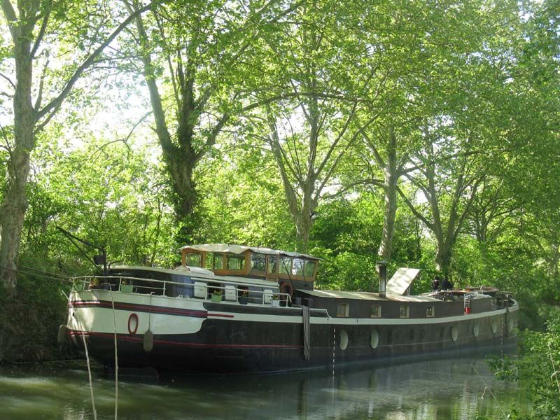Superbe bateau logement amarré à Ramonville (31), un 38m descendu dans le Midi.