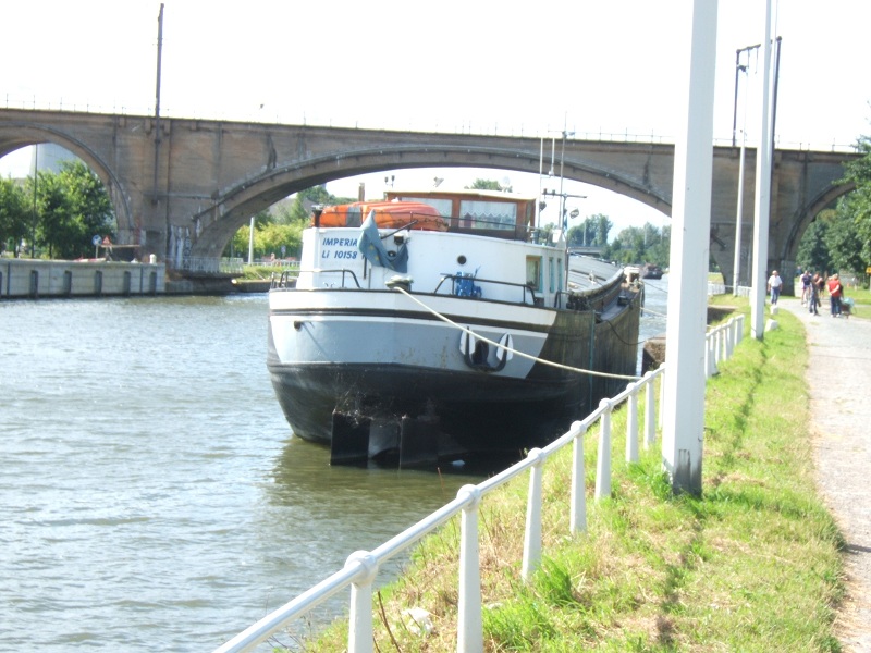Comme le quai est un perré en amont de l'écluse d'Anderlecht et que rien ne protégeait les cornières qui frottaient sur le béton, un beau matin IMPERIALE prenait de la gîte . Voie d'eau rapidement et provisoirement colmaté. Parti vers un chantier ? pour réparation.