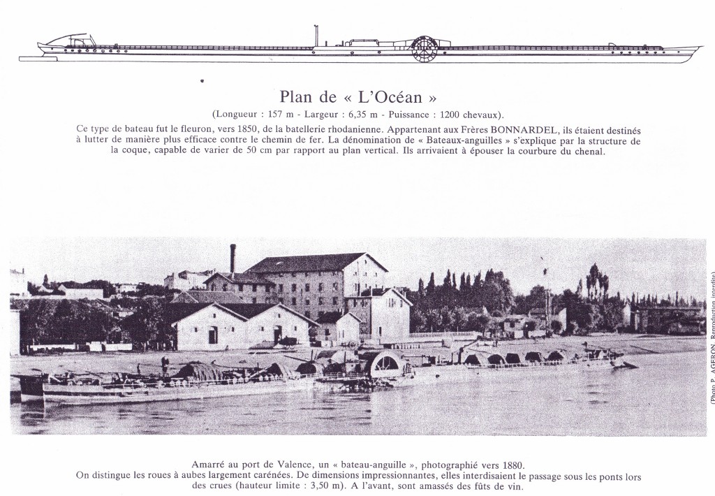 C'étaient eux, les bateaux "anguilles" (on trouve parfois "aiguille", déformation ?). Vu leur longueur finale, et peut-être même intermédiaires, ils ne pouvaient "virer" qu'à Lyon et Arles, et en aval.
