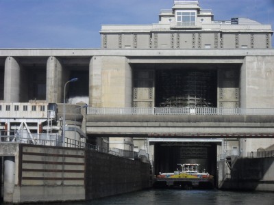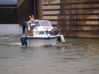 Une bonne heure apres nous sommes a Carnon. C'est ici le point le plus bas su canal ! Attention la tete au pont !!!