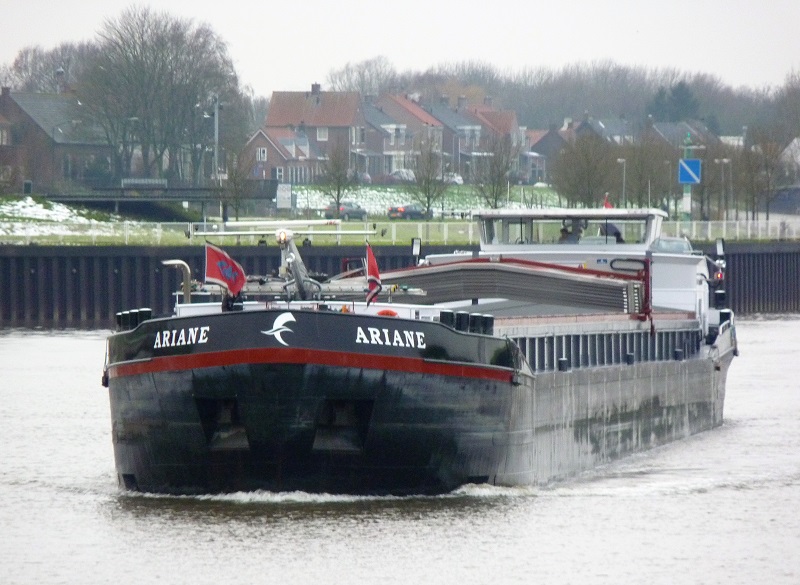 Ariane , 105,00 x 10,00 x 3,18 , 2290 ton , Bouwjaar 2010 , Werf Yangzhou Xianfan Shipbuilding in Xianfan ( China ) en Instalho in Werkendam ( Nederland ) , 1278 pk Mitsubishi en 400 pk DAF van-Wijk boegschroef , eigenaar Seolto CV in Werkendam , ENI 02333549
