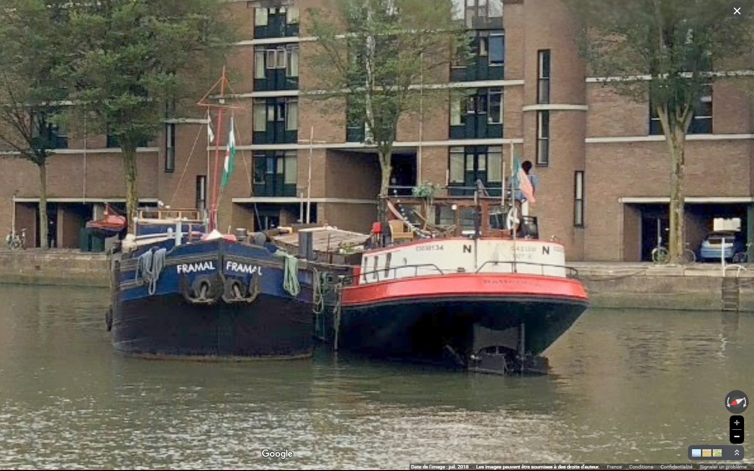 Spitsen & Canal du Nord schepen van diverse lengtes. qu'on apprend, dans une publication de 2019, que ce bateau existe toujours : il est en logement à Rotterdam, à un endroit que les français ont l'air d'appeler le Leuvehaven, mais plus précisèment, comme l'écrivent les hollandais, dans le Rederijhaven. On le retrouve grâce à Google Maps :