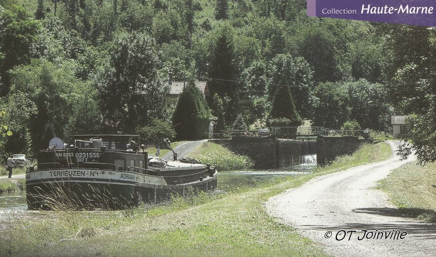avec une photo du canal d'Heuilley / entre Champagne et Bourgogne / de la Marne à la Saône sur laquelle on voit un bateau :