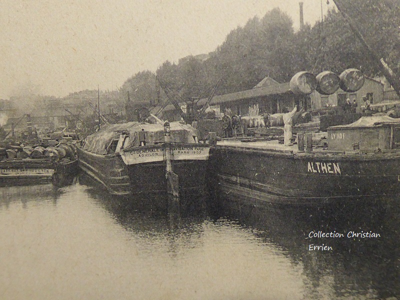 Sur cette cpa prise sur la Saône à Lyon datée de 1908 on voit ALTHEN , une barque du Rhône construite en 1842 au chantier du petit Creusot à Chalon sur Saône. P 110 F