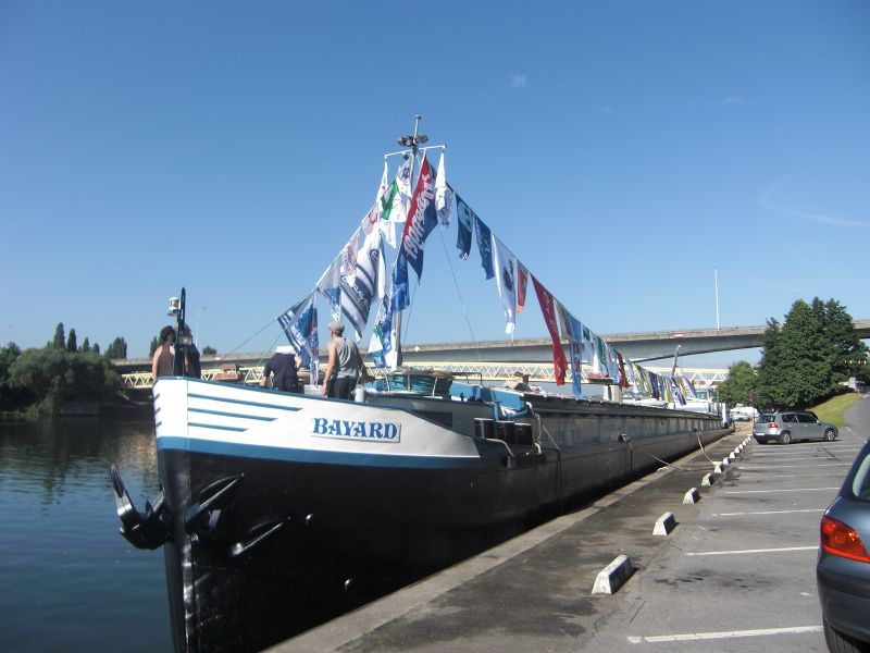 Dans le premier cas, le BAYARD, un Canal du NORD de 1966, les proprietaires sont affaires a poser les derniers fanions a l'occasion du 50eme PARDON...